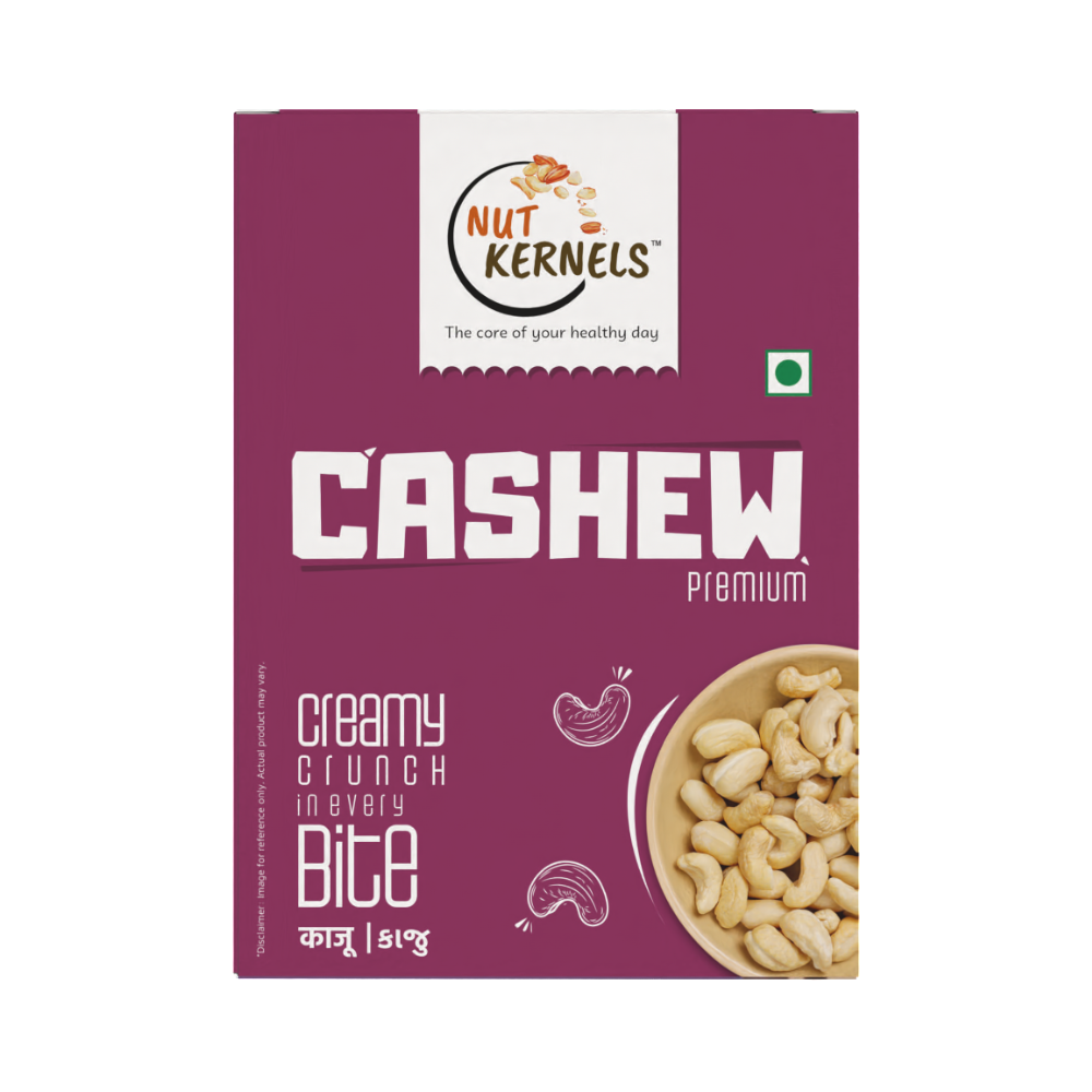 NutKernels Premium Cashew Nuts are king-size kaju with a naturally rich, buttery taste and satisfying crunch, perfect for everyday snacking and gourmet recipes. Carefully sourced and hygienically packed, they bring you a wholesome blend of taste, nutrition, and indulgence in every handful.
